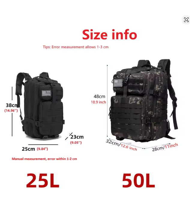 The 50L Tactical Waterproof Backpack is built for those who refuse to quit – whether you’re conquering mountains, fishing at dawn, or preparing for survival. This bag is more than storage; it’s strength, security, and freedom on your shoulders.