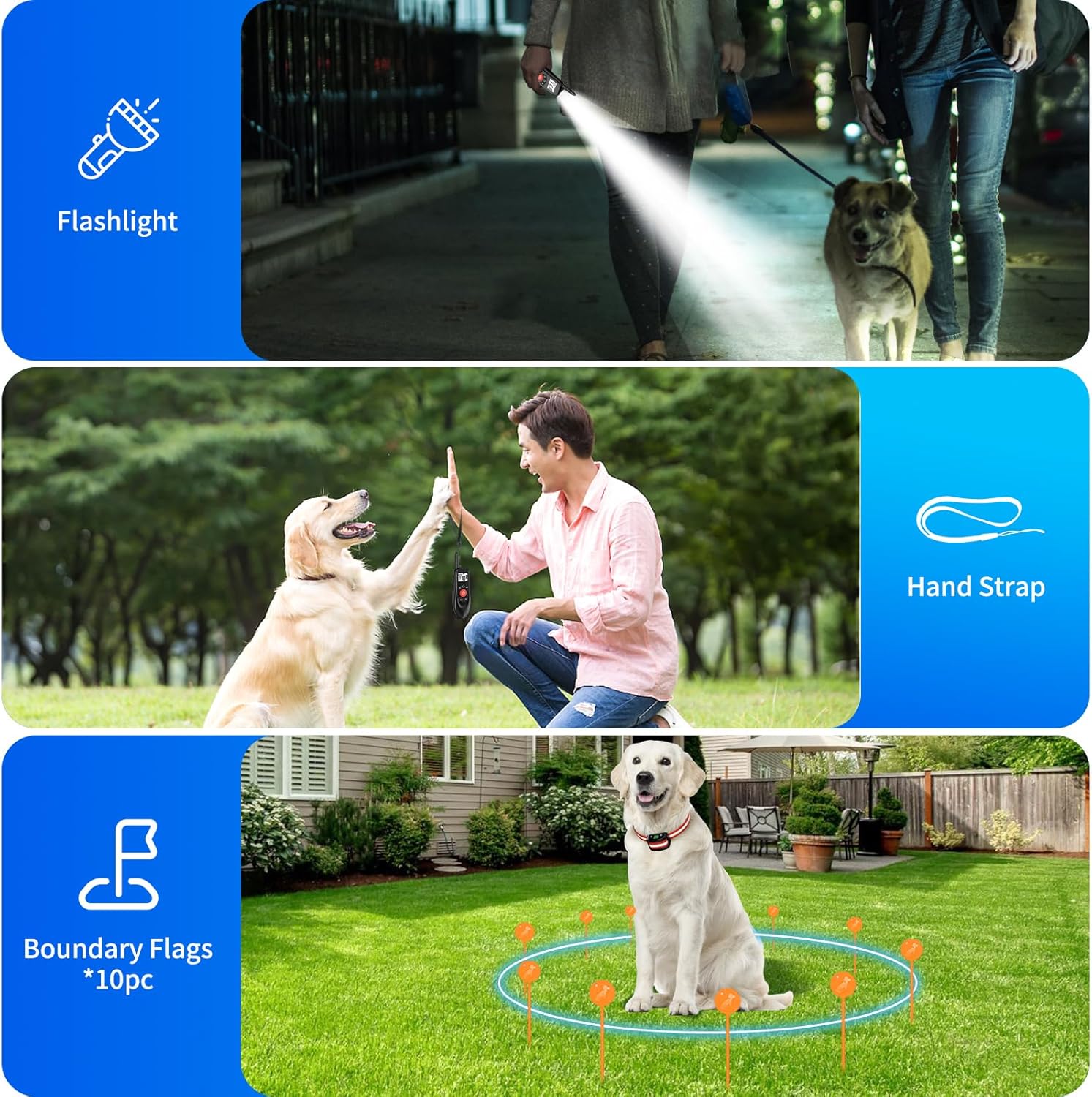 - 【LED Flashlight for Nighttime Visibility】The ergonomic remote includes a dual-mode LED flashlight to quickly locate your dog in the dark—perfect for evening walks or emergencies. Lightweight and travel-friendly for active lifestyles.